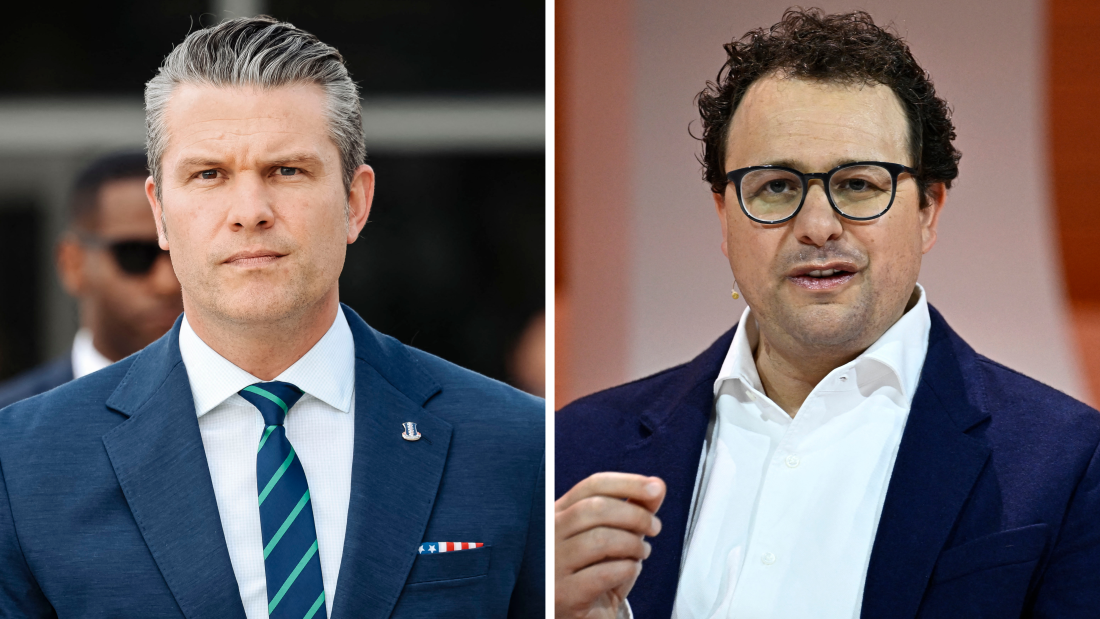 Left: Secretary of Defense Pete Hegseth arrives for the inaugural Americas Counter Cartel Conference at the U.S. Southern Command headquarters in Doral, Fla., on March 5. Right: Dario Amodei, co-founder and CEO of Anthropic at the Vivatech technology start-ups and innovation fair in Paris in 2024.